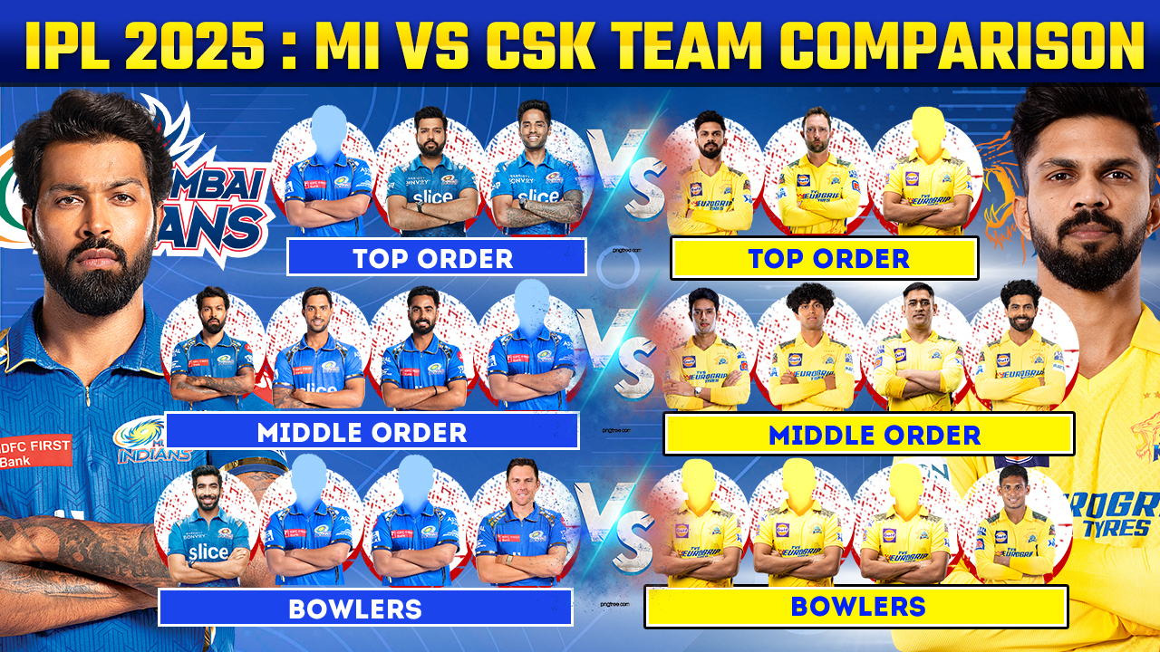 • IPL 2025 : Mumbai Indians vs Chennai Super Kings Team Comparison for IPL 2025 | MI vs CSK Playing 11